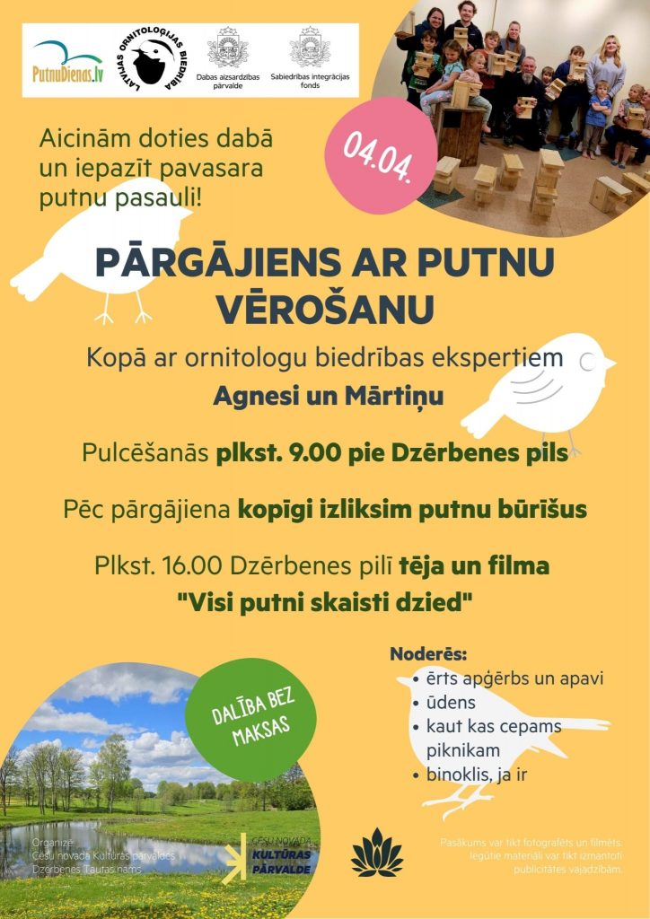 Pārgājiens un putnu vērošana speciālistu pavadībā.