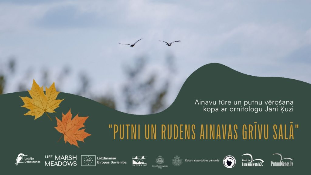 Latvijas Dabas fonds aicina pievienoties ainavu tūrei “Putni un rudens ainavas Grīvu salā”, kas notiks Lubāna mitrāja Grīvu salā 4. oktobrī no plkst. 11.00 līdz 15.00.